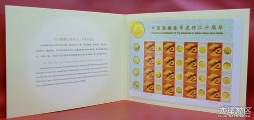 1、 熊猫金币发行20周年纪念邮票板票——15套