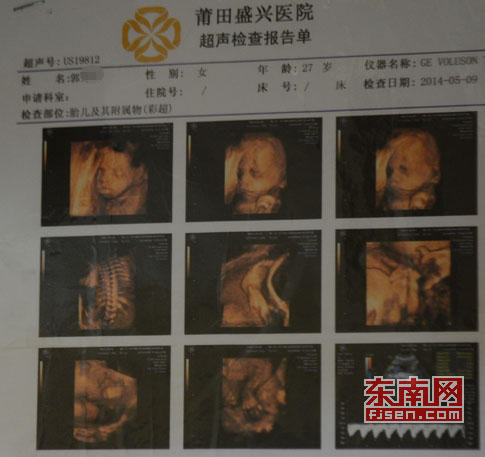 在此期间,戴先生到莆田市九五医院、第一医院等市区多家三甲医院咨询彩超查畸问题,根据莆田盛兴医院此前检验开具的超声检查报告单,各大医院彩超室医生告知“报告单左下角彩超图片很明显就可看出婴儿手部手指并联的畸形情况。”这让戴先生更加确信是医院的过失。