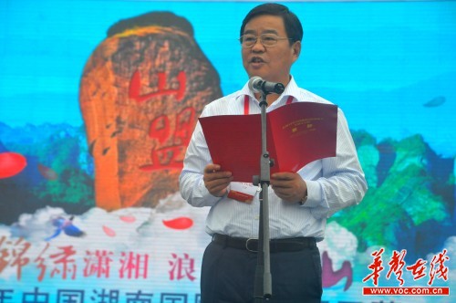 9月16日上午,湖南省人民政府副省长何报翔在2014中国湖南国际旅游节上致辞。记者 赖泳源 摄