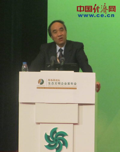 中国经济网鄂尔多斯9月22日讯(记者袁霓)2014年生态文明企业家(库布其)年会9月20日在鄂尔多斯库布其沙漠七星湖举行。全国人大常委、经济学家、民建中央副主席辜胜阻出席年会开幕式并发表主旨演讲。他指出,绿色经济的发展要有生态、民生、经济三大目标,最重要的民生是一种反贫困模式。