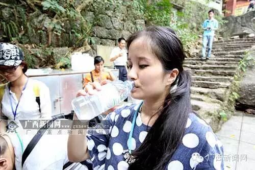采访团记者们纷纷在乳泉井旁品尝泉水。