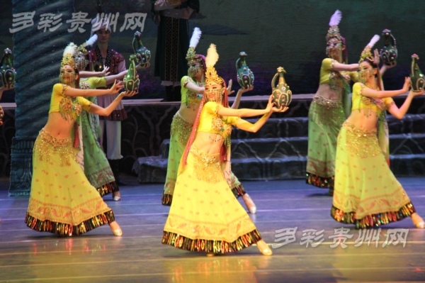 35年前,有着敦煌“活壁画”之称的舞剧《丝路花雨》第一次把绚丽的敦煌壁画、辉煌的丝路古道搬上了舞台。在悠扬的丝路古乐、华美的飞天舞姿中,敦煌画工神笔张和女儿英娘与波斯商人患难与共,成就了一段中外友情佳话。35年来,《丝路花雨》演绎“舞台丝路”不老传奇,不光成了我国舞台上的艺术经典,也成为世界舞台上广受欢迎的中国剧目,先后到朝鲜、意大利、美国等多个国家和地区巡演,所到之处赢得无数赞誉,成为中国舞剧的里程碑。今晚,这部经典舞剧首度亮相贵州,其多变的舞美场景、丰富的舞蹈造型,给贵州观众演绎了一场极美震撼的丝路传奇。