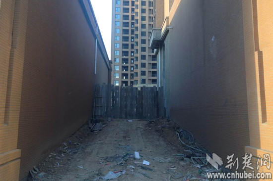 昨日还能自由通行的楼盘通道现已被竹制踏板封闭