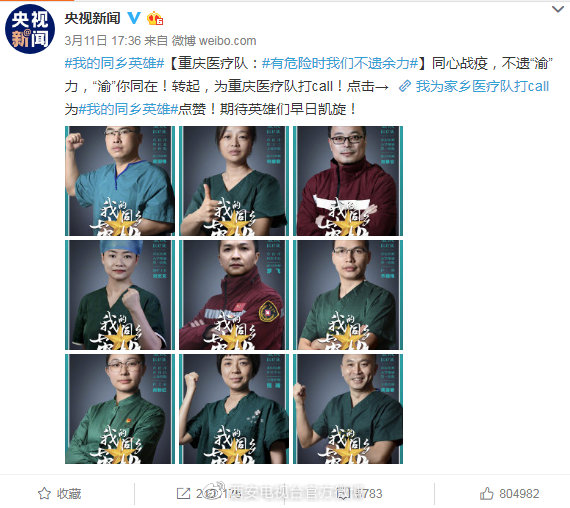 20多天前的3月18日,为迎接抗疫英雄陆续返程回家,央视新闻再次启动“共同战‘疫’ 我的同乡英雄”主题融媒体活动。走进全国18个城市,将132位各地支援湖北抗疫一线的医护人员肖像海报投放在5万余座户外电子屏中,并同步进行新媒体直播,共同致敬“我的同乡英雄”。